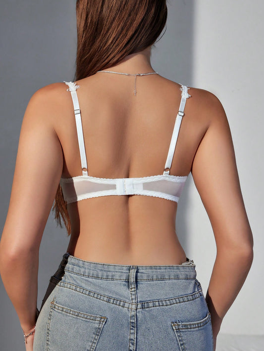 Delicate White Sheer Bra with Elegant Embroidery and Bow Detail for Women