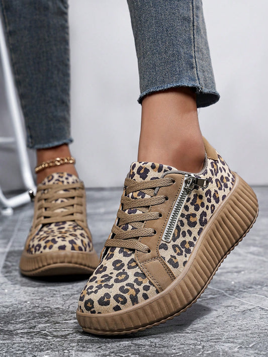 Chic Brown Suede Chunky Sneakers for Women - All-Day Flex Comfort with Side Zip Design