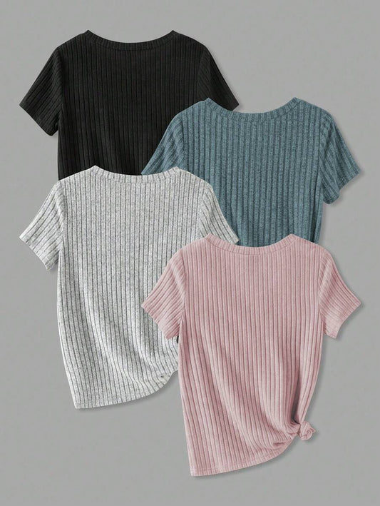 Chic Women's V-Neck Short Sleeve Pocket T-Shirt - Casual Solid Color Essential
