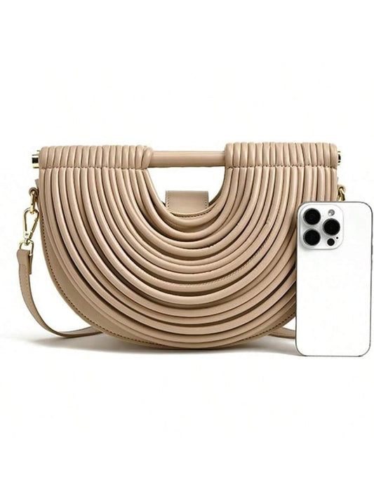 Chic Slouchy PU Leather Cloud Semicircle Crossbody Bag - Stylish Woven Hobo Tote for Women