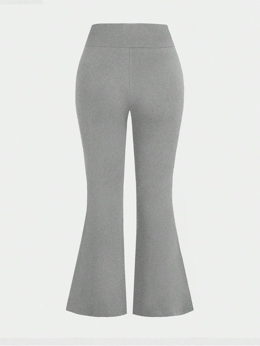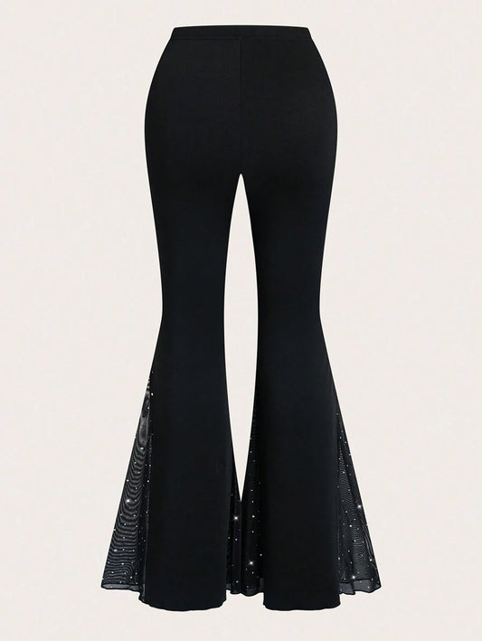 Plus Size Sweetra Casual Mesh Patchwork Flare Pants for Fall - Stylish Daily Wear for Women