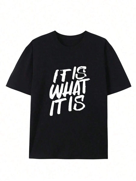 Men's Summer Pure Cotton T-Shirt with Fun Letter Print - Casual Round Neck Short Sleeve Unisex Top