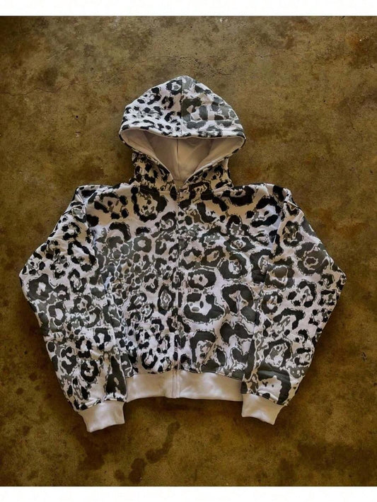 Trendy Leopard Print Hooded Cardigan Sweater for Casual Autumn and Winter Fashion