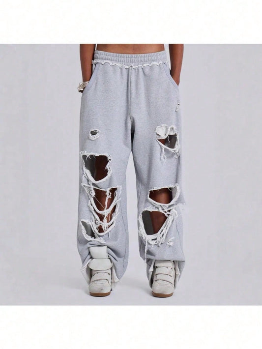 Stylish Ripped Wide Leg Sweatpants for Hip Hop Enthusiasts - Casual Loose Fit Trousers