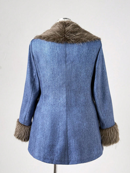 Elegant Plus Size Women's Long Sleeve Faux Denim Jacket with Pockets - Perfect for Fall and Winter Outings