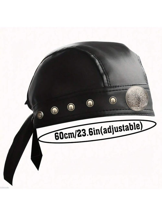 Cool Punk Black PU Leather Tree of Life Skull Turban Hat for Halloween, Christmas, Cosplay & Rave Parties