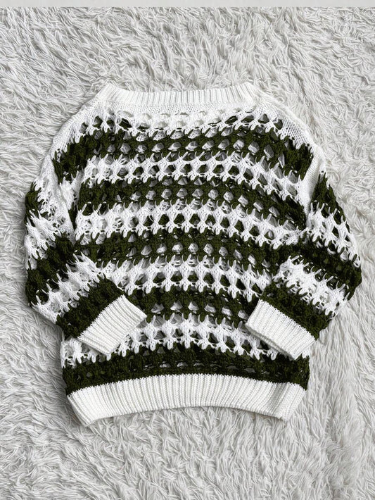 Plus Size Y2K Hollow Out Knit Sweater for Women - Stylish Black & White Crochet Design for Spring, Summer, and Autumn