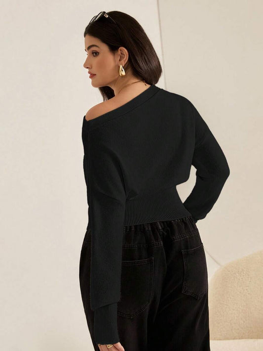 Chic Plus Size Off-Shoulder Beige Sweater for Effortless Autumn Style