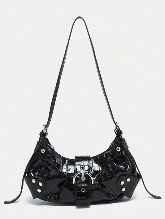 Vintage-Inspired Portable Crossbody Bag for Women - Punk Gothic Y2K Style Vegan Leather Purse with Rivets and Chains for Edgy Street Fashion