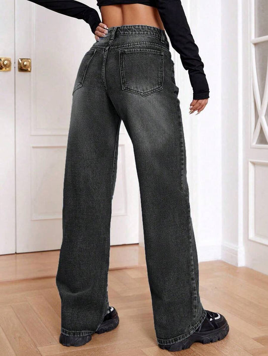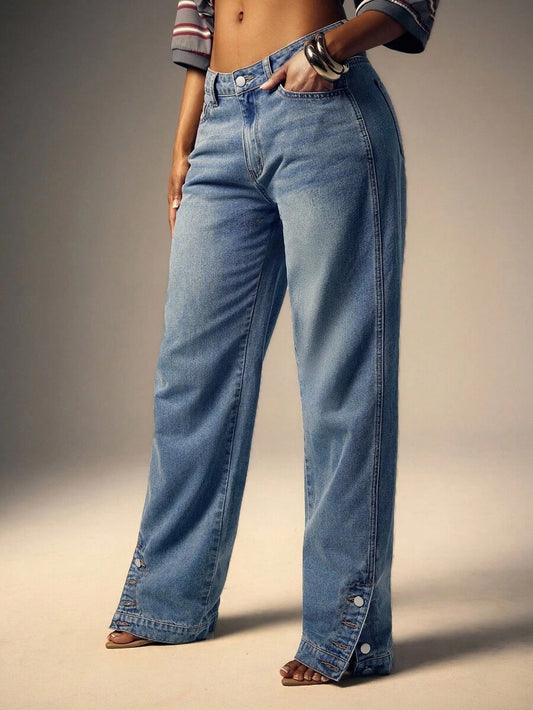 Chic Denimoi Straight Leg Ankle Slit Jeans with Stylish Button Detail for Effortless Fashion
