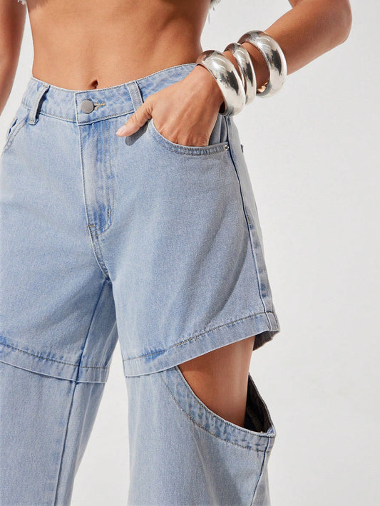 Trendy Y2K Low Rise Baggy Fit Cut-Out Denim Jeans for Women - Stylish Streetwear Essential