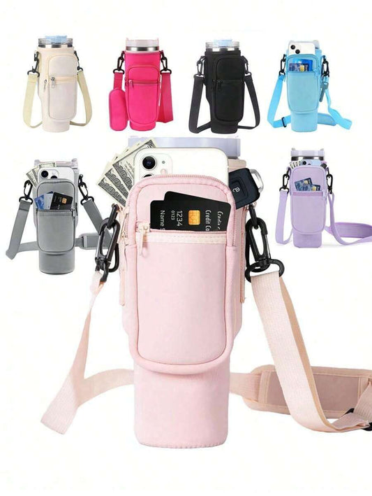 Outdoor portable crossbody water cup protection multifunctional universal water bottle storage bag single shoulder solid color