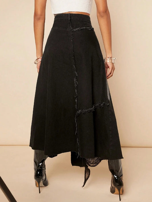 Chic Asymmetrical Ripped Denim Skirt with Overlay Waist for Women