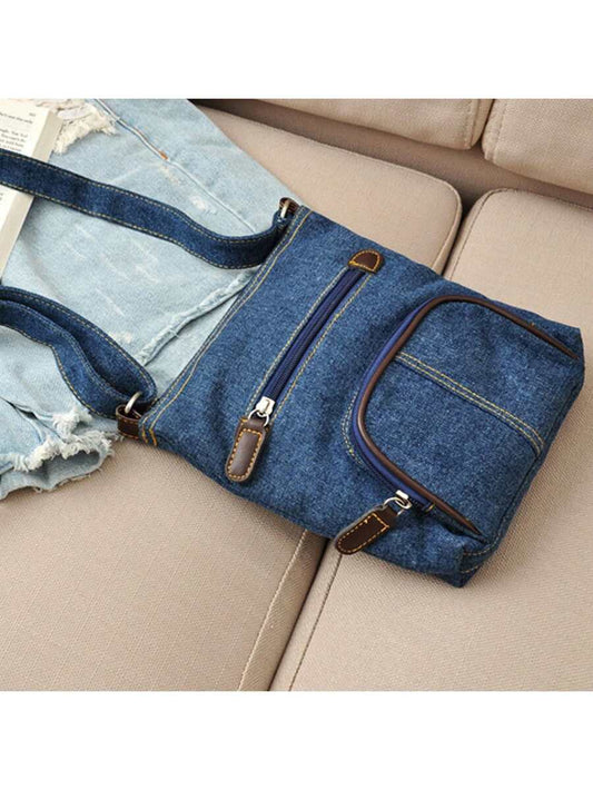 Vintage Women’s Denim Crossbody Bag with Multi Pockets and Adjustable Straps