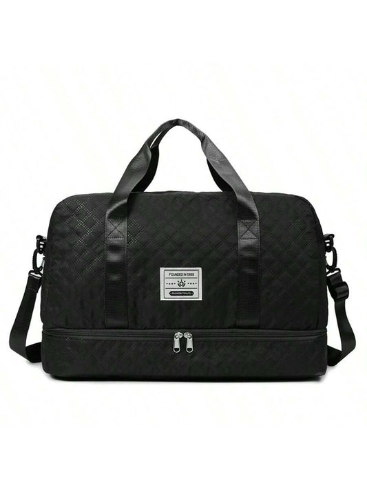 Stylish Diamond Lattice Sports Handbag with Wet/Dry Separation and Shoe Compartment for Yoga and Travel