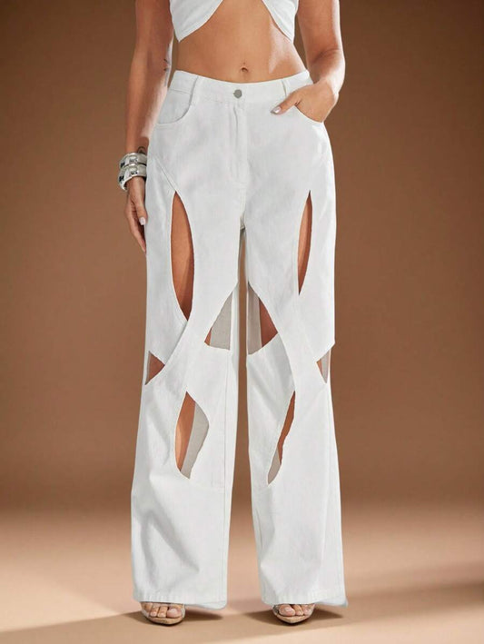 Trendy Denimoi Cut-Out Straight Leg Jeans for Fashion-Forward Streetwear Looks