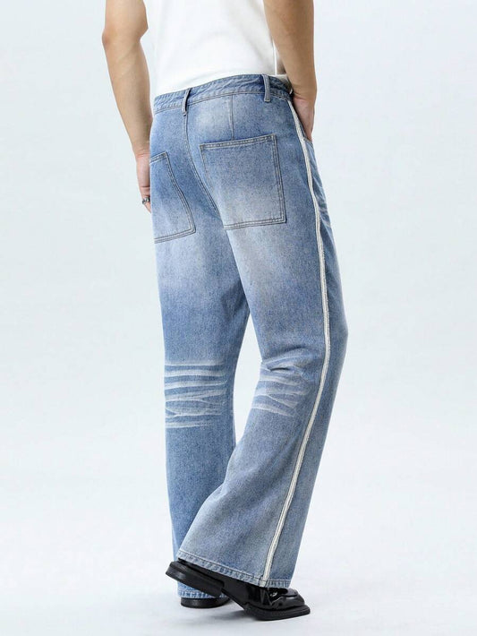 Streetrush Men's Jacquard Straight Leg Flare Wide Leg Jeans for Trendy Urban Style