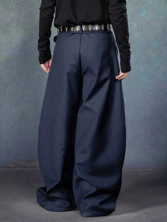 Trendy Men's Black Wide Leg Casual Pants with Metal Ring Patchwork Design - Perfect for Streetwear and Emo Styles
