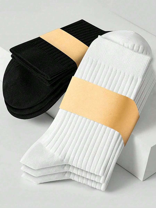 Vibrant Vertical Stripe Mid-Calf Socks Set for Women - 10 Pairs of Colorful Couples' Styles