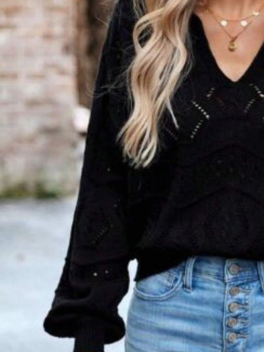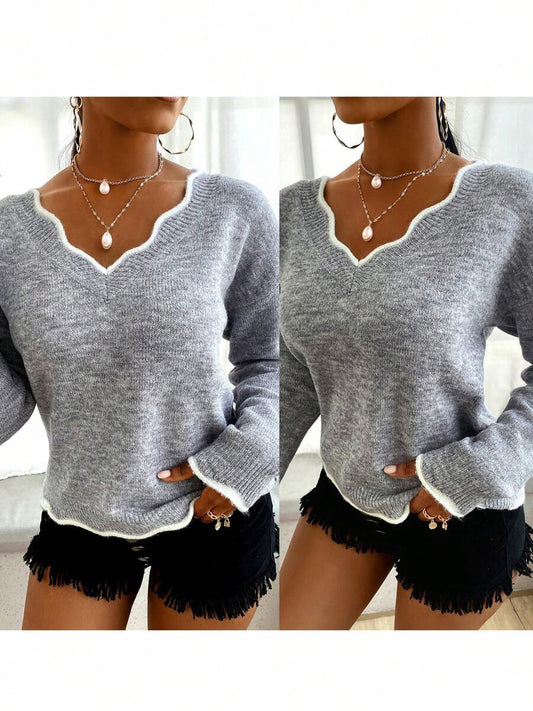 Cozy Women's Wave V-Neck Sweater - Lightweight Casual Knit Pullover for Fall & Winter Streetwear