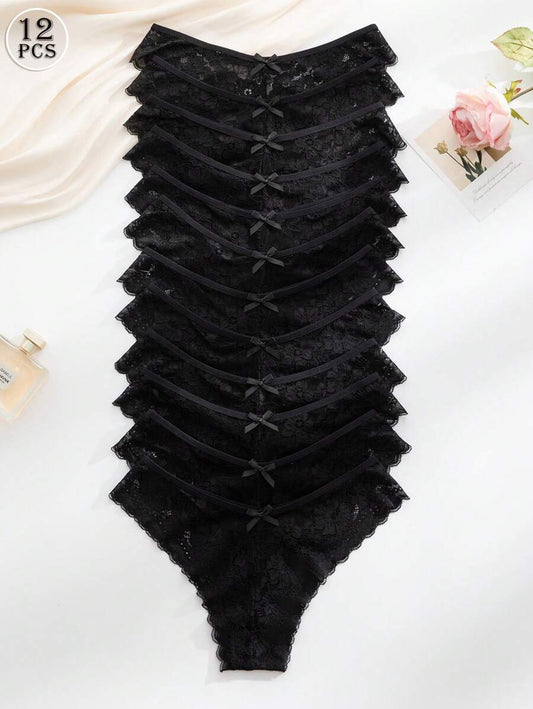 12-Piece Women's Elegant Lace Trim Bikini Underwear Set for Ultimate Comfort and Style