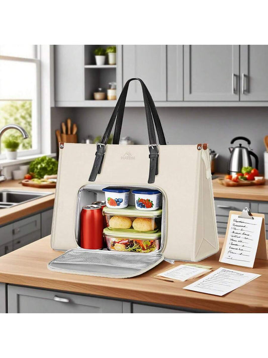 Stylish 15.<br>6-Inch Insulated Lunch Tote Bag for Women - Versatile Laptop Work Handbag with Large Capacity for Office & Travel