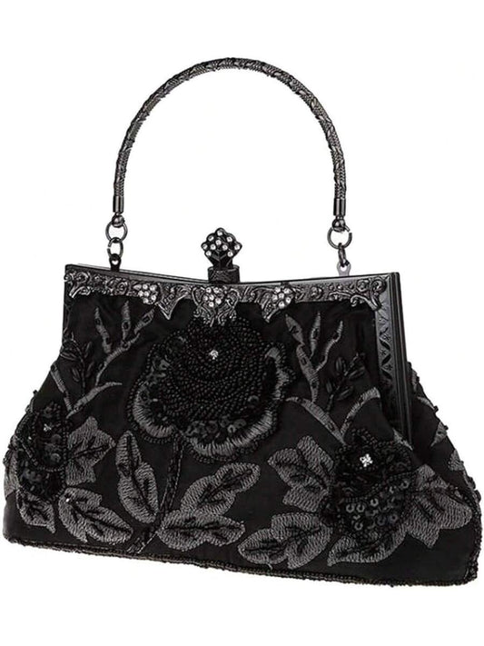 Vintage Sequin Embroidered Evening Bag - Elegant Clutch for Weddings and Parties