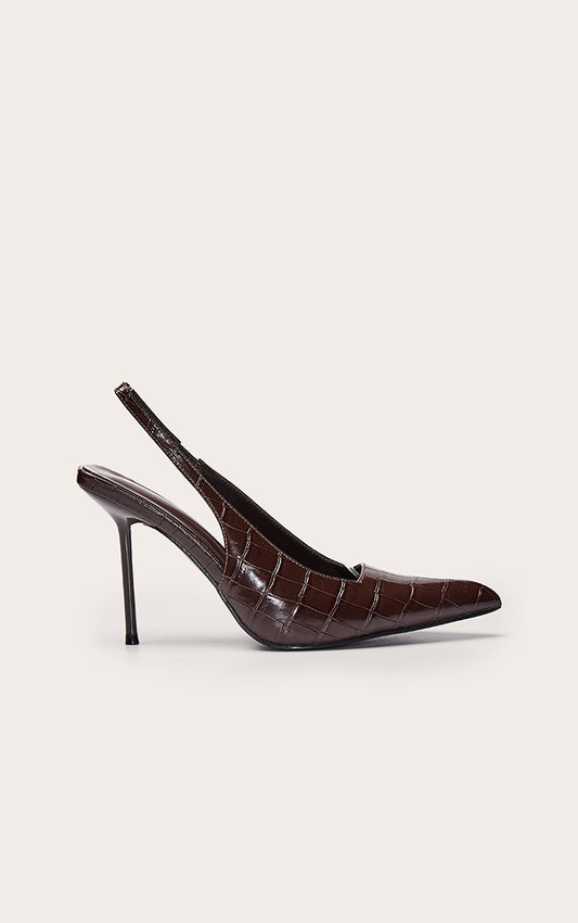 Chocolate Croc Heeled Sling Back Court Shoe – Trendy Chic Footwear for Every Occasion
