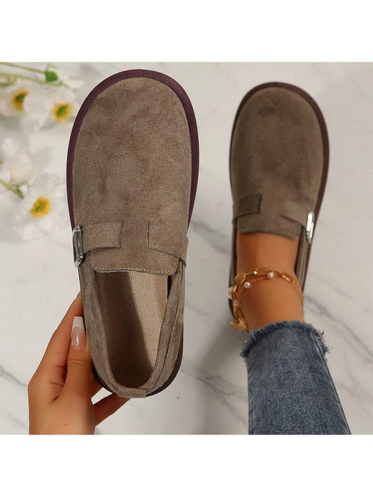 Comfortable Plus Size Soft Leather Slip-On Shoes with Buckle – Versatile All-Season Style