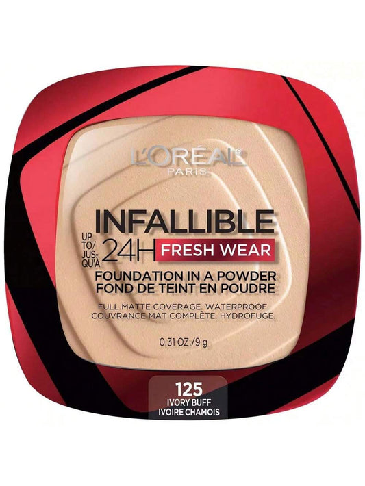 L'Oreal Infallible 24H Fresh Wear Foundation Powder - 125 Ivory Buff, 0.<br>31 oz for Flawless, Long-Lasting Coverage