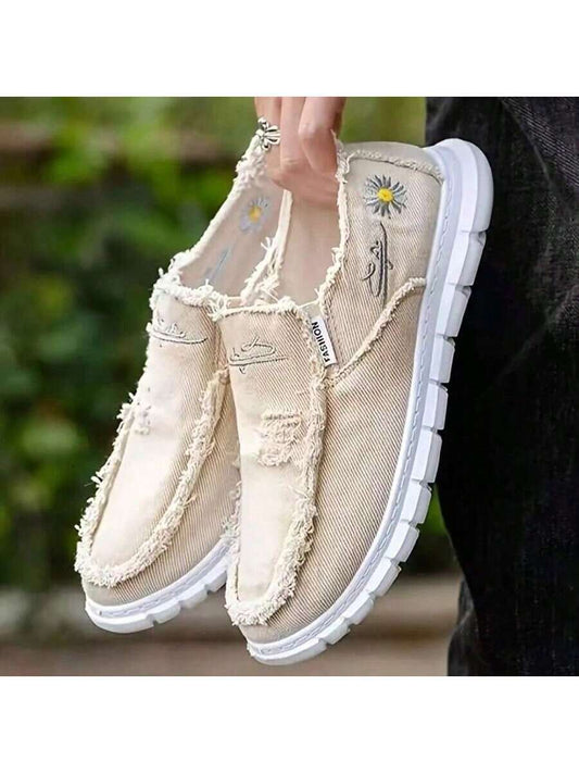 Trendy Ripped Canvas Slip-On Shoes for Women – Breathable Casual Comfort