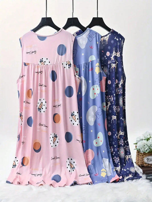 Cozy Comfort: 3-Pack Women's Sleeveless Nightgowns for Ultimate Sleepwear Bliss