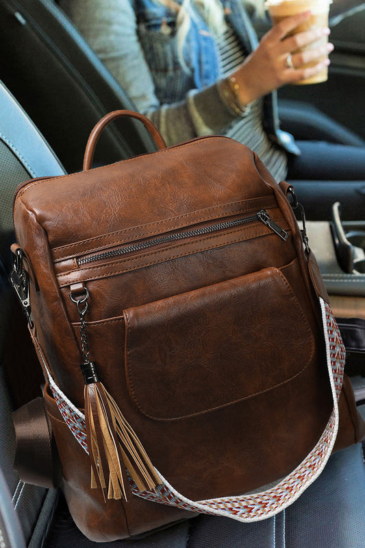 Stylish Retro PU Large Capacity Backpack with Tassel Decoration for Everyday Use