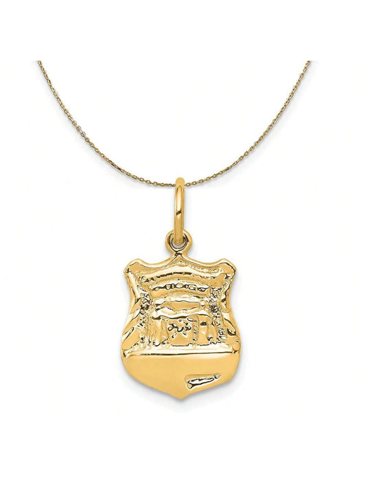 Elegant 14k Yellow Gold Police Badge Necklace with Black Bow Accent