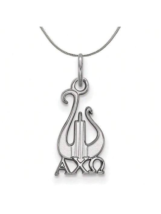 Elegant Sterling Silver Alpha Chi Omega Pendant Necklace with Black Bow