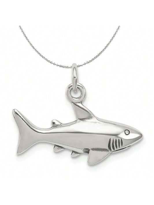 Antiqued Shark Charm Necklace in Sterling Silver with Black Bow - Unique Ocean-Inspired Jewelry