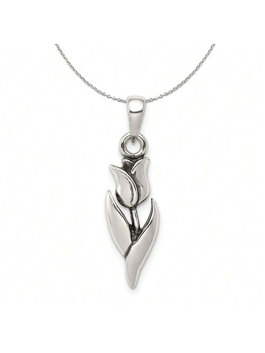 Elegant Antiqued Tulip Necklace in Sterling Silver with Black Bow Accent