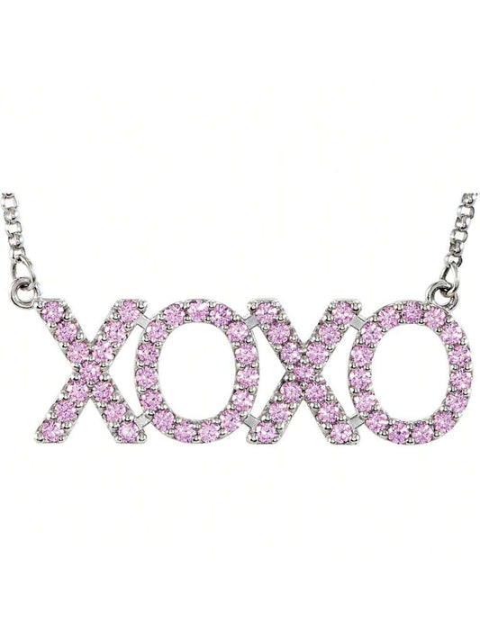 Elegant Black Bow XOXO Pink Cubic Zirconia Necklace in Sterling Silver - 18 Inch