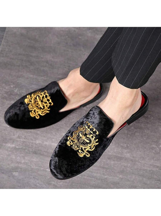 Stylish Men's Leather Scuff Slippers - Velvet Slip-On Loafers & Anti-Slip Clogs for Everyday Comfort