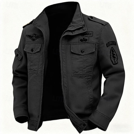 Men's Versatile Utility Cargo Jacket - Classic Casual Wear for Spring and Fall with Front Pockets