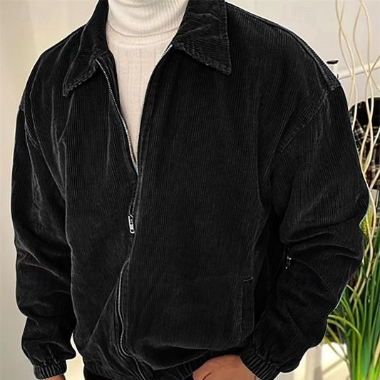 Stylish Men's Lightweight Corduroy Jacket for Spring & Fall - Casual with Pockets in Black and Blue