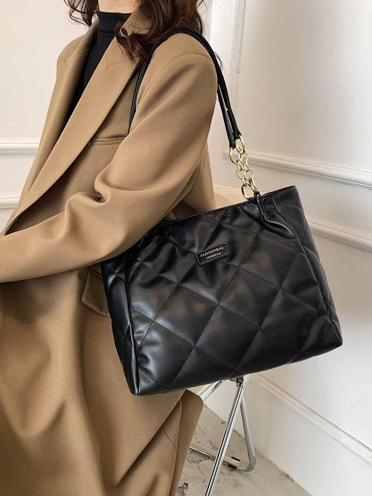 Chic Quilted Pattern Letter Patch Shoulder Tote Bag for Stylish Women at Work