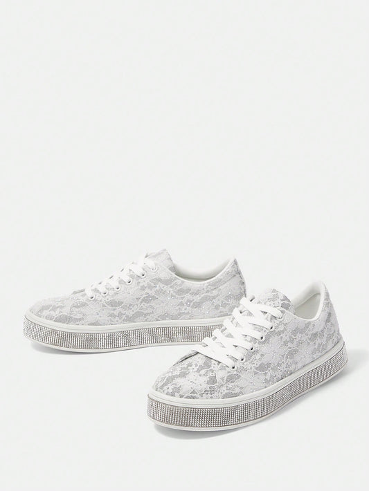 Elegant Women's Round Toe Rhinestone-Decorated Comfortable Casual Sports Shoes