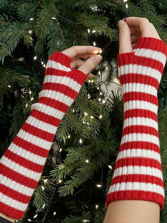 Adorable Striped Knit Gloves for Women – Perfect for Christmas and Halloween Parties