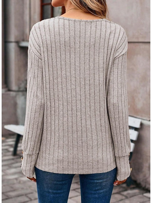 Stylish Women's Casual Long Sleeve Blouse with Buttons - Versatile Solid Colors for Spring and Fall