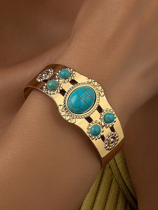 Bohemian Women's Cuff Bracelet in Silver, Gold, and Turquoise - Stylish Alloy Jewelry