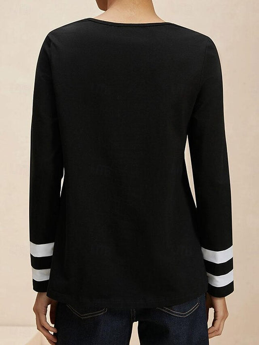 Women's 100% Cotton Long Sleeve Black T-Shirt for Everyday Casual Wear in Fall & Winter