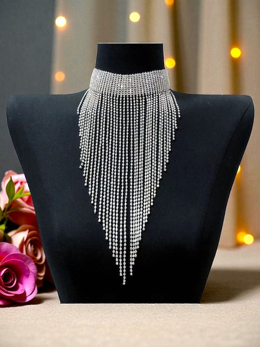 Elegant Rhinestone Fringe Choker Necklace for Women - Luxury Statement Jewelry for Parties and Formal Events