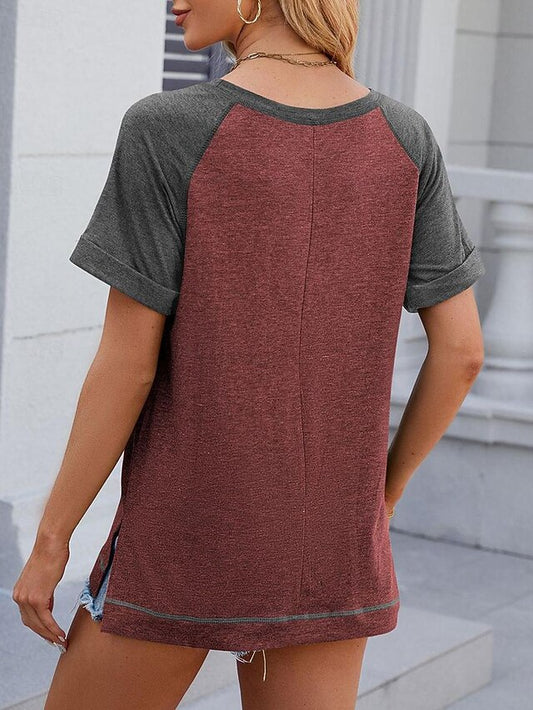 Elegant Vintage Women's Tunic: Short Sleeve V-Neck Top in Pink and Blue for Spring & Summer Fashion