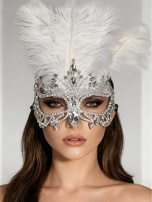 Luxury Rhinestone Feather Masquerade Mask for Women – Elegant Party Accessory for Balls, Costumes, and Carnivals